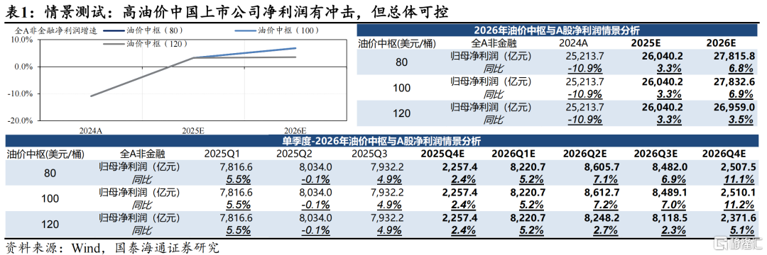 经济社会与资本市场稳定,推动中国资产风险溢价降低。能源价格高企与运输受阻将对全球需求形成冲击,2026年中国经济政策重心以内需为主导,采取扩张性的财政取向,并更大力度地支持消费并推动投资止跌回稳,内需企稳回升有望对冲全球需求的回落,国泰海通证券预计2026年全A非金融盈利增速将进一步提升。从中国资产来看,中国特色稳市机制的完善提升中国股市抵御风险的能力,加之中国资产本身与全球资产低相关带来的风险分散价值,其“避风港”属性有望逐步显现。