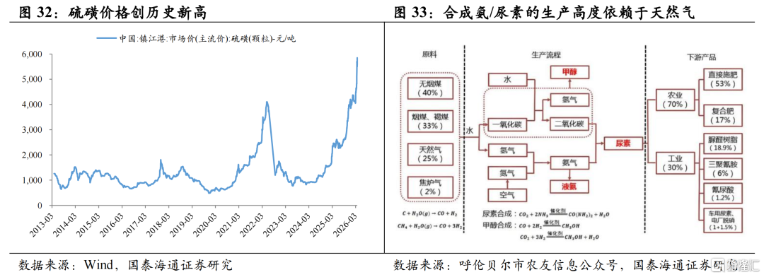 投资建议:航运贸易不畅以及潜在生产风险影响存量供给,供应链安全有望重塑。随着霍尔木兹海峡持续封锁,油气供应链面临物理断裂的潜在风险,不仅会在价格层面产生连锁反应,更会在供应链层面引发“疤痕效应”。中东地区硫磺年产能约占全球的35%,且近期卡塔尔、沙特、科威特多处能源设施遭伊朗无人机袭击,短期中东地区硫磺供应或受较大影响。霍尔木兹海峡承担着全球约30%的化肥贸易运输,伴随霍尔木兹海峡梗阻,粮食危机风险正在上升。此外,氦气、溴素、电子级芳烃等关键材料的短缺,将对半导体生产环节带来扰动。